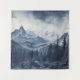 A stunning tapestry that showcases a breathtaking landscape of rugged mountains, dense pine forests, and a rocky foreground, all rendered in a monochromatic palette of deep and soft blues. The intricate details and artistic shading create a serene yet dramatic atmosphere, making it a perfect piece for nature lovers and those who appreciate minimalist, atmospheric décor. Ideal for hanging in a living room, bedroom, or cabin-style space, this tapestry brings the beauty of the wilderness indoors.