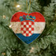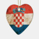 The flag of Croatia is made to look aged and rugged. Rough textures cover the flag giving this ornament a grungy feel. This ragged Croatian flag is a fun and stylish way to show your patriotism.