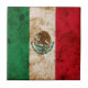 The flag of Mexico is made to look aged and rugged. Rough textures cover the flag giving this tile a grungy feel. This ragged Mexican flag is a fun and stylish way to show your patriotism.