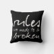 Rules are made to be broken throw pillow from the Breathe In novel by Martha Sweeney.