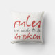 Rules are made to be broken throw pillow from the Breathe In novel by Martha Sweeney.