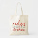 Rules are made to be broken canvas bag from the Breathe In novel by Martha Sweeney.