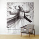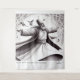 At the heart of this artistry is a mesmerizing depiction of a Sufi Dervish dancer in the throes of an ecstatic whirl. The dancer, draped in pristine white robes, is captured in a moment of pure transcendence. Their arms gracefully extend, and their eyes are closed in deep meditation, exuding an aura of serenity and euphoria.