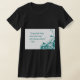 My overall review is that the T-shirt is nice, it fits true to size however the font is significantly smaller than advertised and you can't read it. The printing is unreadable and there is a strain to read it. It does not look like the advertised product. Maybe the shirt color is darker or a larger more visible font should have been used. Photos with and without flash and font is barely legible.