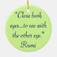 Picture of Rumi on one side with the quote "Close both eyes...to see with the other eye." on the other side