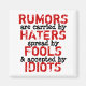 Original Design. Copyright. RUMORS ARE CARRIED BY HATERS SPREAD BY FOOLS AND ACCEPTED BY IDIOTS. Gossip, philosophy. Add your own image and / or words. Change background to any color. Give as a gift to yourself or a loved one! Great for personal, family events, advertising, humanitarian awareness, environment awareness, promotions or business events! Great for RESALE. The more you order the more you save money! Copyright. Match with other items. **********CustomerService*********If you have any questions or difficulties with an order please call TEL: 1-888-892-9953 in the USA or (408) 983-2800 International. Hours: 8AM to 6PM PST (11am-9pmEST), Monday - Friday. $$$$$$$$COMMISSION$$$$$$$$ You can make 15% commission if you link my store and/or any single product to your store, personal website, facebook, etc. Very easy and FREE! Contact Customer Service. PS: YOU MAY ADD ANY OF MY ART ON YOUR FACEBOOK OR TWITTER OR ANYWHERE ELSE AS LONG AS YOU STATE THAT IS FROM GalleriaofArt.com! (Even better if you link & make money $$) THANKS SO MUCH!