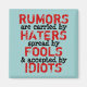 Original Design. Copyright. CHANGE BACKGROUND TO ANY COLOR. RUMORS ARE CARRIED BY HATERS SPREADED BY FOOLS AND ACCEPTED BY IDIOTS. Please be aware that this has been intentionally misspelled, but it can be corrected at your discretion. I was misspelled to express a sentiment. Gossip, philosophy. Add your own image and / or words. Change background to any color. Give as a gift to yourself or a loved one! Great for personal, family events, advertising, humanitarian awareness, environment awareness, promotions or business events! Great for RESALE. The more you order the more you save money! Copyright. Match with other items. **********CustomerService*********If you have any questions or difficulties with an order please call TEL: 1-888-892-9953 in the USA or (408) 983-2800 International. Hours: 8AM to 6PM PST (11am-9pmEST), Monday - Friday. $$$$$$$$COMMISSION$$$$$$$$ You can make 15% commission if you link my store and/or any single product to your store, personal website, facebook, etc. Very easy and FREE! Contact Customer Service. PS: YOU MAY ADD ANY OF MY ART ON YOUR FACEBOOK OR TWITTER OR ANYWHERE ELSE AS LONG AS YOU STATE THAT IS FROM GalleriaofArt.com! (Even better if you link & make money $$) THANKS SO MUCH!