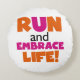 Run and Embrace Life text T-shirts, hoodies, magnets, mousepads, cards, stickers, key chains, buttons, magnets, paper plates and napkins, gift bags, candy tins, watches, and many other items with a bright pink and orange design. These running theme products make great gifts for anyone who runs for fun, runs track, marathons, half marathons, 10Ks, or 5Ks!