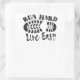 The key to life is to run, and run hard. But when not running, live easy. This cool design has a running shoe sole surrounded by cool fonts.
