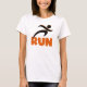 Running T-shirts, mugs, bags, keepsakes, tank tops, hoodies, and other apparel and gifts for runners featuring a black silhouette runner and orange text that reads RUN. These RUN apparel and gift items are great for anyone training for a 5K, anyone who just loves to run, or someone who has already accomplished several marathons!