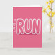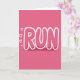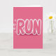 This card features the big word “RUN” front and center in large, rounded bubble letters. The letters are bright pink with a thick white outline, and a darker pink shadow behind them gives the text a slightly raised look. The background is a solid fuchsia pink that keeps the focus on the message. To the left of the “R,” several white heart outlines float upward in different sizes, adding a sweet Valentine’s touch. The hearts and the soft letter shapes make the whole design feel friendly and upbeat. The text looks like cartoon-style block lettering, and it takes up most of the middle of the card. It’s a simple, fun way to send a little energy with love ❤️💌🍫. Hope it helps you share your Valentine’s Day feelings with someone you care about.
