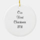 So cute but unfortunately had a crack from the hole to the edge. Though appeared to maybe just a surface crack, Zazzle offered to replace it & did so quickly. It'll be way on time for Christmas. Excellent...it'll be a great keepsake for my sister who recently got married & she's obsessed with owls!