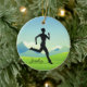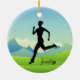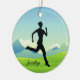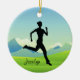 Female Runner Jogger Personalized Ornament with mountain background and customizable text, front and back!