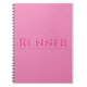 Runner (pink) on a Spiral Notebook. "Runner;" a simple one word statement for runners & running enthusiasts! Light & dark pink writing / typography with white highlight. A simple yet distinctive design. Motivational while being fun. Just right for the new fitness runner to the dedicated & experienced racer. Great for lifestyle, home, workout room, office, school, or as a gift. Various options available!