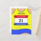 Customisable yellow running vest postcard, for birthday wishes, good luck or just recording a time achieved at a running or athletics event or meet.