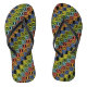 A fun pair of flip flops for anyone who enjoys running. The design is an all-over pattern print using the letters of RUNNING to create swathes of color.