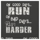 On Good Days Run - On Bad Days Run Harder motivational running quote for long distance, full or half-marathon runner. Proper mindset is essential to reach our race goals. >> Gift idea to motivate runners training for 5k, 10K, Cross Country, Track and Field, Trail runs, or marathons. >> Customizable artwork. Add YOUR OWN personal name or custom message. Click "Personalize" and create your own custom text, add a background shape, graphic, etc. to make your final design.