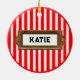 Lightweight, smooth, pure white ornament with nice sheen. Perfect size to be seen from across the room ... and to attract closer inspection! Price was great for ordering enough for the whole family! Clear, bold black design just as requested. Matches the order exactly. Just so nice!