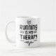 Running is my therapy mug. Funny runner marathoner quotes for women mental health. Run addict jogger jokes cute heartbeat aesthetic gift.