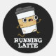 Running Latte Funny Coffee Pun Dark BG Classic Round Sticker