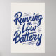 A sarcastic handwritten typography poster featuring the phrase “Running on Low Battery” in a loose brush script. Perfect wall art for those with a sense of humor, ideal for bedrooms, offices, or dorm rooms.