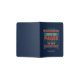 Our funny and cute passport holder design features a funny saying on a navy blue background which you can easily change by using our design tool. Send us a message if you're unsure of how to do this. "Running out of Pages in my Passport" is depicted on the front with airport stamps and a city skyline. Personalize with your name by clicking the "Personalize" button.