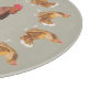 This cutting board features a border of strutting brown hens with a central rooster. A colourful accessory for the kitchen.