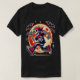 This unique Halloween t-shirt design features a cool skeleton running under a full moon, complete with red sneakers and a red bandana for a stylish touch. Surrounded by flying bats, this design blends spooky vibes with retro style, perfect for Halloween parties or year-round lovers of edgy, gothic aesthetics. Get noticed with this bold graphic tee that’s sure to turn heads!