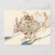 Kernal Cob and Little Miss Sweetclover hitch a ride on a snowshoe hare down a snowy slope in this vintage illustration from a 1918 children's book.