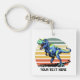 Dinosaurs may be long gone but they are real inspiration today specially for kids. This design features colorful T-Rex running during sunset. You may add your own text in the text field and order customized acrylic keychain.