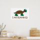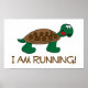 It may not look like it but, "I am running!", a tortoise says. Funny saying for busy people who may not look like they're getting much accomplished. A hand-drawn illustration.