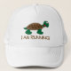 A tortoise is running as fast as it can. Funny hat for busy people or to work out in.