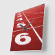 Square wall clock with a photo of start numbers on a running track. Customizable.