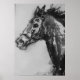 pen and ink painting by Carol Lake Studios of an excited horse barely controled by the bridle