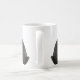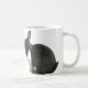 A beautiful charcoal and white bunny facing his mirror image on an 11 ounce mug.