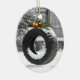 Nostalgic country Christmas with a tire swing hanging from a tree limb in snow with holiday decorations added for those that remember the simpler times of Christmas decorations Christmas holiday ornament