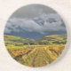 I'm not sure how much moisture these will soak up, haven't had a chance to try them out, but they look good and I like the cork backing. The printing is fine ~ and really looks cool with an artisan's hand made "Hurricane Martini" glass sitting on top of my painting (on the coaster) in my studio.