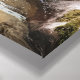Feel the energy of the mountains with this dynamic nature photograph. This canvas captures the power and clarity of a glacial stream as it surges over smooth river stones and mossy boulders. The cool teal water and bright white foam create a refreshing focal point, perfect for adding life and movement to your wall decor.