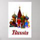 Vintage style travel poster for Russia, featuring Saint Basil's cathedral.