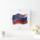 Represent Russia! This item features a wavy Russian flag blended into the American flag in 3D. Do you know a Russian or Russian-American who misses their home country and culture and would like to be patriotic about their nation? Travellers to Russia, Russian-Americans, or Russians themselves will love to show their heritage and national pride. Our design is perfect for a tourist as a vacation souvenir or for anyone interested in cultural ancestry, heraldry, family history, or collecting souvenirs. You don't have to travel to Moscow to display you are a proud Russian! Other locations and countries are available.