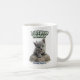 Classic white mug featuring a cute Russian Blue kitten with bright green eyes and a funny “I See You Human” design. Perfect for everyday use.