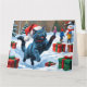 Russian Blue Cat Running Snow with Christmas Hat Card