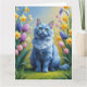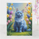 A cheerful Cat sits peacefully on lush green grass, surrounded by colorful spring blooms under a soft blue sky. This digital oil painting captures a serene moment with expressive brushstrokes, warm colors, and a sense of gentle joy.