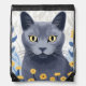 Russian Blue Cat Yellow Flowers Drawstring Bag