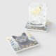 Russian Blue Cat Yellow Flowers Marble Stone Coaster