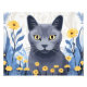 Russian Blue Cat Yellow Flowers Photo Print