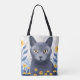 Russian Blue Cat Yellow Flowers Tote Bag