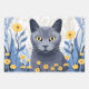 Russian Blue Cat Yellow Flowers Wrapping Paper Sheets