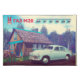 A faux propaganda image featuring a rural scene from the early post-war Soviet Union. Depicts a GAZ M-20 Pobeda automobile, in front of a dacha (rural summer house). Across the upper part of the image is an "M20" hood ornament, Cyrillic (Russian) text reading "ГАЗ" (GAZ) and a side ornament found on the vehicles featuring stylized Cyrillic text reading "Победа" (Pobeda). The image has been "aged" to suggest that it dates from the early post-war period. Internal Soviet propaganda often tried to inform the people how good life was in the USSR. A dacha and a car to get there signified the good life. City dwellers dreamed of having a small plot of land outside the city to flee to on summer weekends, away from the heat and dirt of the city. The Pobeda, was the first automobile manufactured for the public after the end of World War. The M20 was produced 1946 to 1958. GAZ (ГАЗ is a Russian acronym for Gorkovsky Avtomobilny Zavod - Gorsky Automobile Factory) Pobeda (Победа) is the Russian word for victory. The name was chosen because the car was first tested in 1943 when an Allied victory in World War II began to appear likely.The Pobeda was manufactured under license in Poland and a few were assembled in North Korea. The Pobeda was the first post-war Soviet-made automobile and the first Soviet vehicle to have turn signals, two electric wipers, an electric heater, and a built-in AM radio. The car came to be a symbol of postwar Soviet life and is today a popular collector's item. A total of 235,997 Pobedas were produced. A number of M20s have been extensively customized in recent years. There are even a few "muscle car" versions on the road.