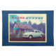 A faux propaganda image featuring a rural scene from the early post-war Soviet Union. Depicts a GAZ M-20 Pobeda automobile, in front of a dacha (rural summer house). Across the upper part of the image is an "M20" hood ornament, Cyrillic (Russian) text reading "ГАЗ" (GAZ) and a side ornament found on the vehicles featuring stylized Cyrillic text reading "Победа" (Pobeda). The image has been "aged" to suggest that it dates from the early post-war period. Internal Soviet propaganda often tried to inform the people how good life was in the USSR. A dacha and a car to get there signified the good life. City dwellers dreamed of having a small plot of land outside the city to flee to on summer weekends, away from the heat and dirt of the city. The Pobeda, was the first automobile manufactured for the public after the end of World War. The M20 was produced 1946 to 1958. GAZ (ГАЗ is a Russian acronym for Gorkovsky Avtomobilny Zavod - Gorsky Automobile Factory) Pobeda (Победа) is the Russian word for victory. The name was chosen because the car was first tested in 1943 when an Allied victory in World War II began to appear likely.The Pobeda was manufactured under license in Poland and a few were assembled in North Korea. The Pobeda was the first post-war Soviet-made automobile and the first Soviet vehicle to have turn signals, two electric wipers, an electric heater, and a built-in AM radio. The car came to be a symbol of postwar Soviet life and is today a popular collector's item. A total of 235,997 Pobedas were produced. A number of M20s have been extensively customized in recent years. There are even a few "muscle car" versions on the road.
